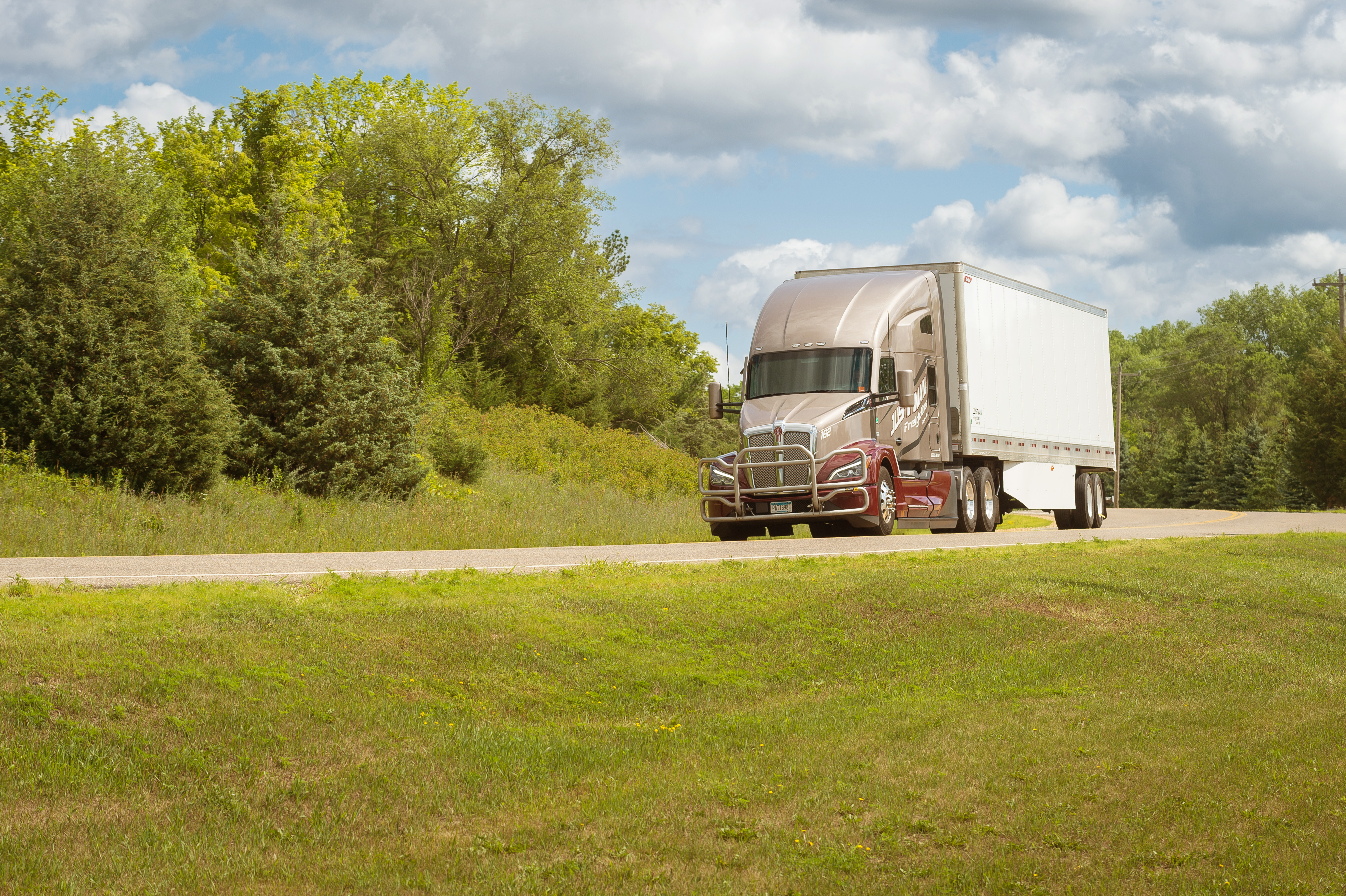 We are a small company based in Eagan, MN. We haul mostly business-to-business, always trying to avoid food and consumer goods where you'll sit at a receiver for a very long time. Our runs are out and back. We do not stay out on the road for weeks on end either. We leave town with our customer's freight, deliver, and come right back, either with customer freight or a brokered load we already have lined up.