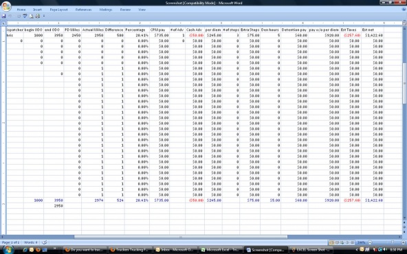 Excel Screen shot
