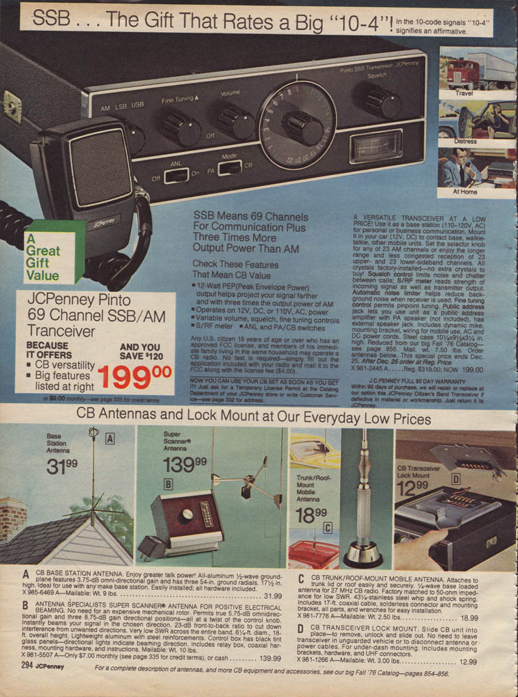 I bought one of those JCPenney radios at a garage sale for $5 with the wood grain finish on the front but it was a 40 channel with digital display and ssb. It worked really well