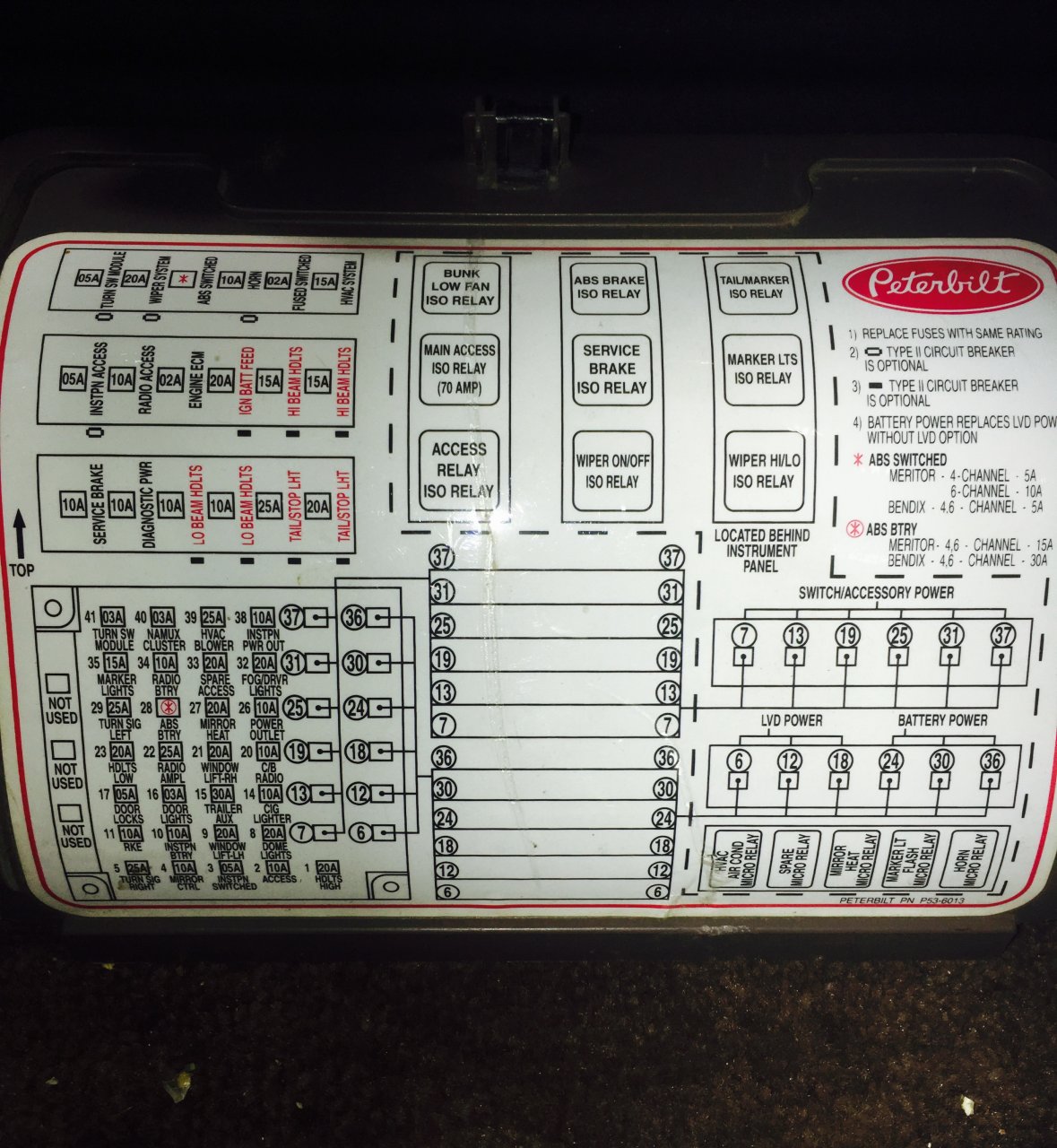 2006 peterbilt 379 fuse panel Diagram