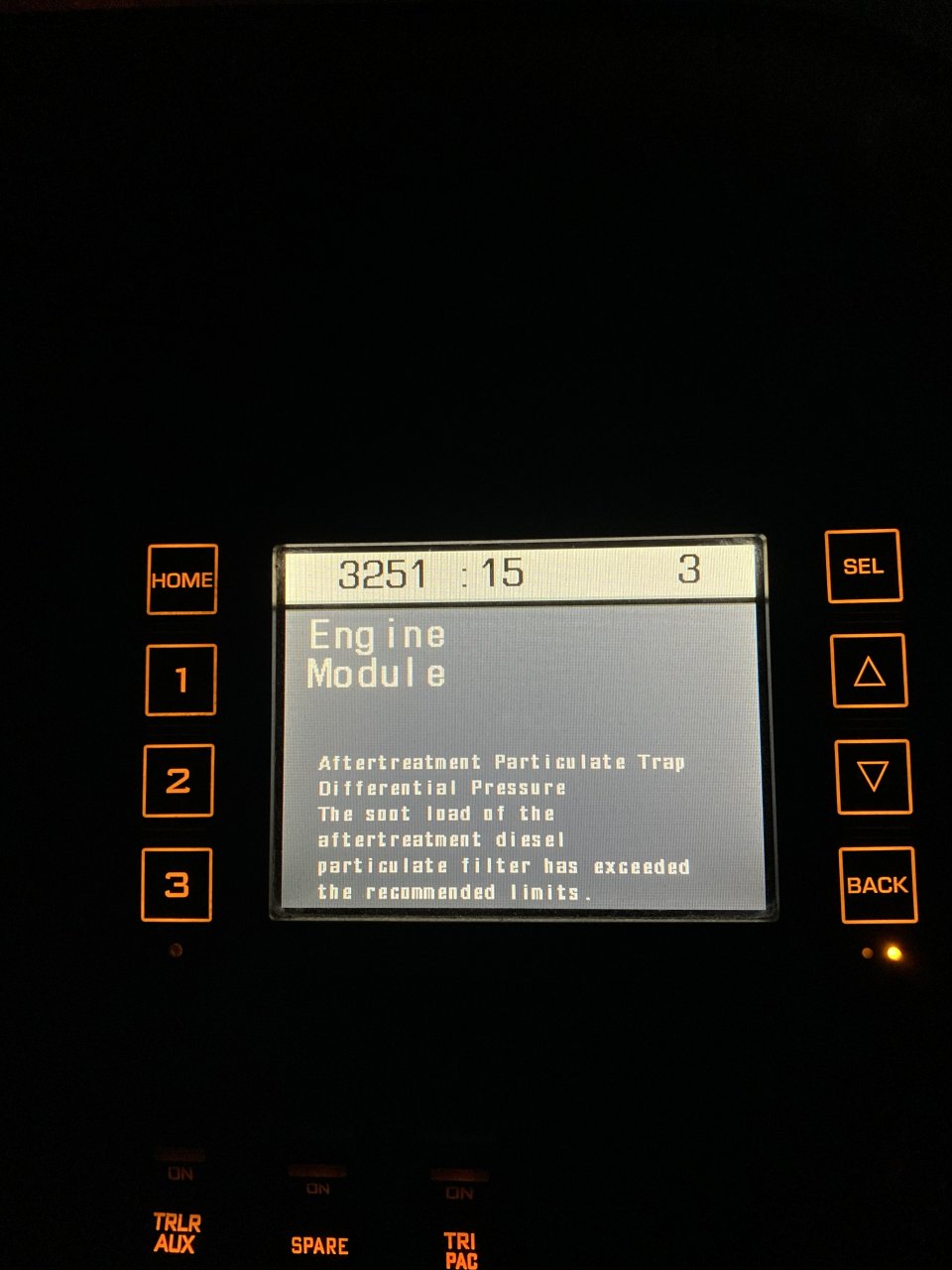 I have a 2010 prostar with Cummins isx. It shows warning engine light on highway with code 3251 fmi 15. When get off the highway warning engine light replace with regen light. Do a park regen, every thing become fine. No code shown. Same thing happening every day. I had bake filter, put new doc & new turbo. Still same problem. Plz suggest me how to come out. Every time Machenic throw new parts. -