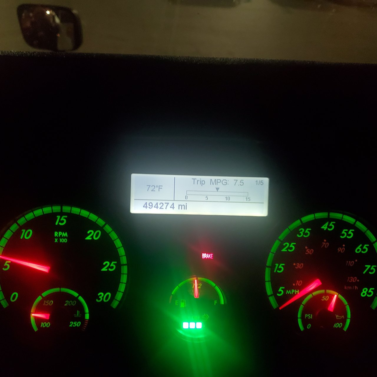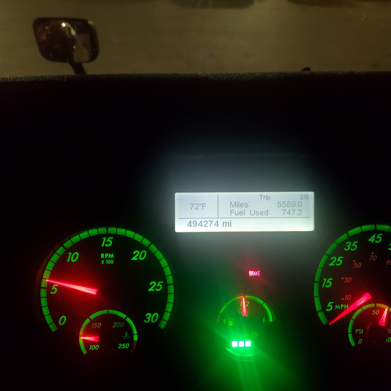 I'm currently getting around 7.3 mpg. Not sure if this is good or not? I was getting around 7.5 but that was with a bit more deadhead. It's gotten up to 7.8 but that was one trip with roof joists that wasn't that heavy. I've only had the truck for around 4 months now and I don't know pretty much anything about the previous history on it such as when the air filter was last changed and such. I typically fuel at the Love's. Not sure that means anything but I have heard drivers talk about fueling at mom and pop's fuel stops where they claim the fuel is better and thus better mileage. This mileage is usually at 75,000 lbs. I rarely run light loads. This truck is a manual 10 speed with a DD15 engine. Oh and I run flatbed. The truck also is full size, not the mid-roof. Oh and I run 65 mph.