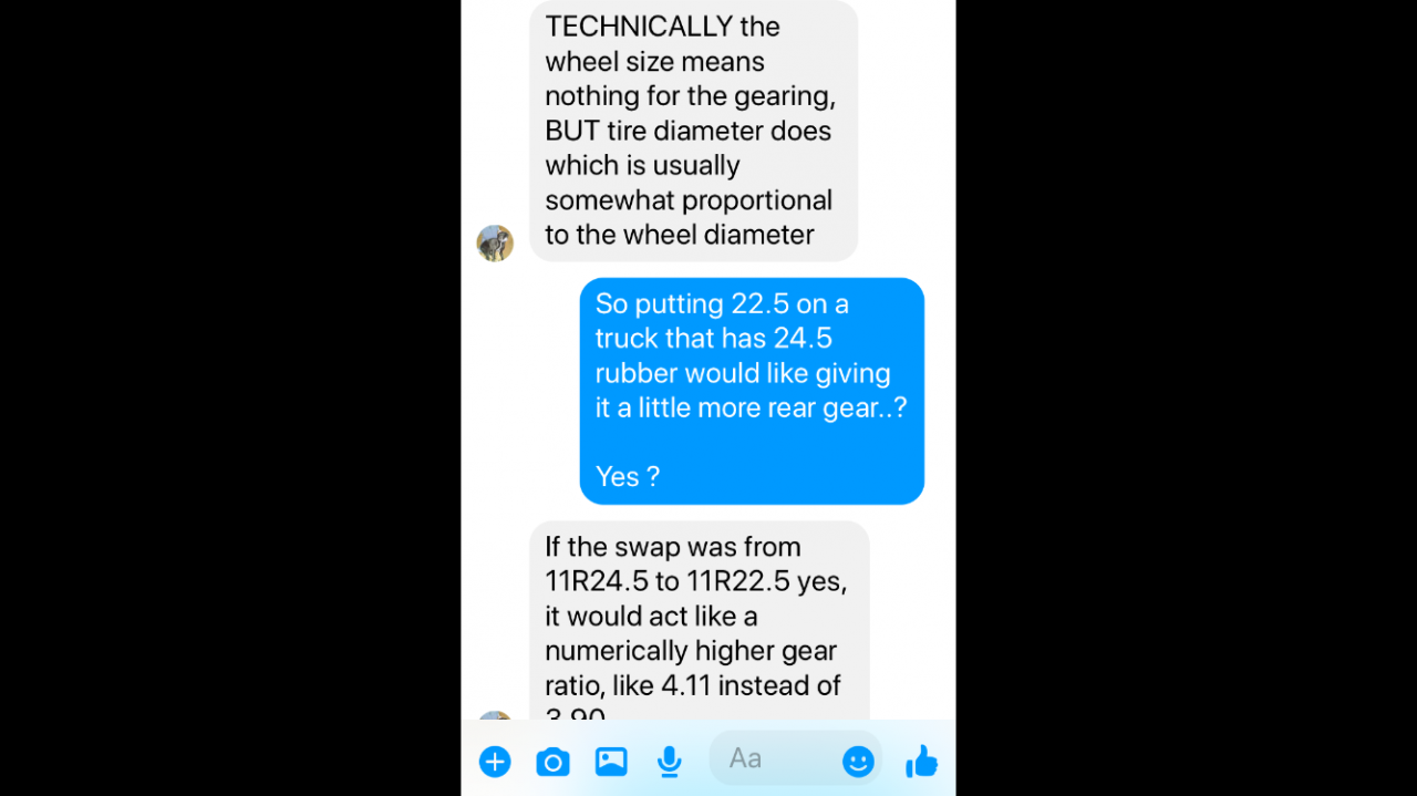But putting 22.5 on that truck is the same a going to 3.55 or maybe 3.70 rear gear.