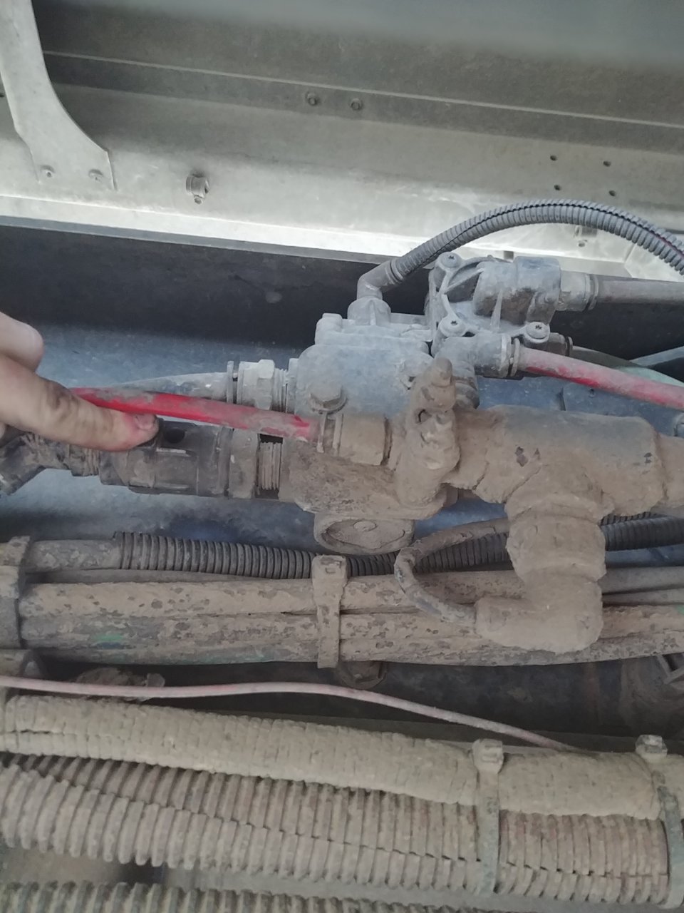 So this valve, I assume the ABS valve, is leaking air out the exhaust hole (I'm pointing at) it only does it when the red trailer brake knob is pushed in.