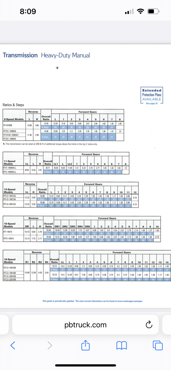 My FIL, that’s wanting to build a 4070B, has found and purchased an International ProStar cutoff that has Meritor rear ends. All that sounded fine to me and then I asked, “what rear ends” he sent me a pic of the details. What am I supposed to do with this gear ratio? He’s gonna use the truck for hopper bottom, end dump, some flatbed and pull a pot, occasionally. When he told me what rears it had, I gave him the “side eye”. Truck is gonna have a fresh BC 400 and I WAS, gonna put one of my RTO14615’s in it, for him. I would’ve liked 3.73 or 3.55’s but this is what he brought home.![]()