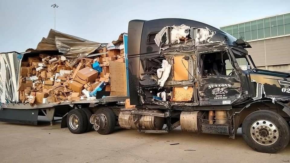 They have a opening, no bridges were harmed, hit another Amazon truck stopped on the shoulder.