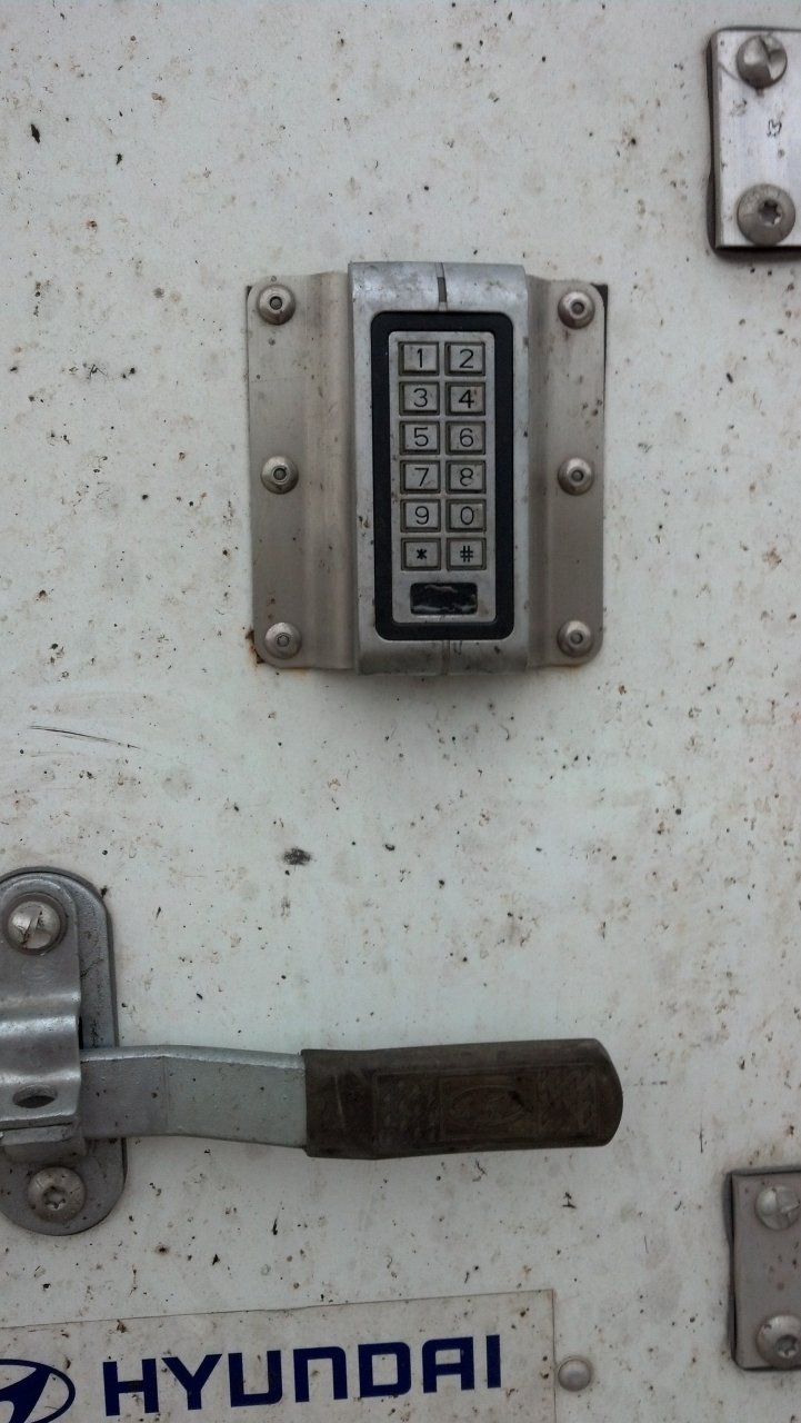 The trailer he wanted me to pull has the keypad-thing you see in the accompanying photo. At first, I thought it was a keypad lock for the vent/pulp door on the rear but when I opened the right trailer door, I realized the trailer doesn't have a vent door on it. I don't have a clue what that keypad is for.