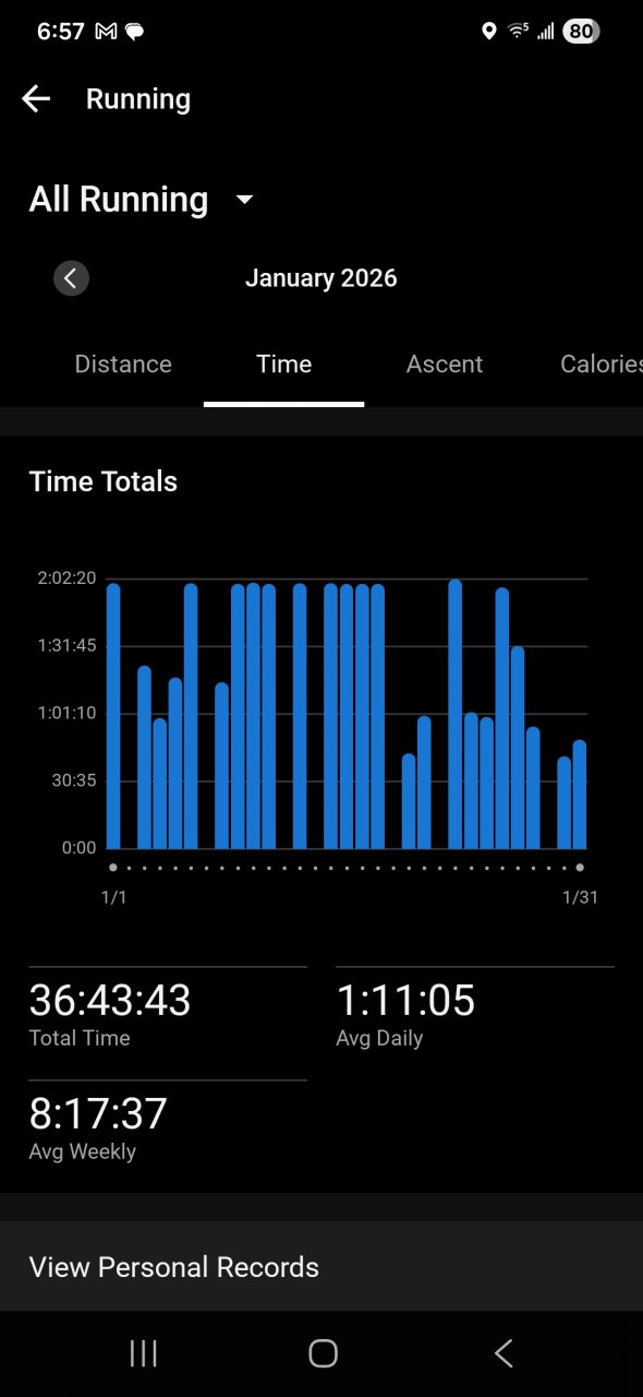 When you’re on the treadmill, how long do you run for? I did one treadmill run for 45 minutes and it was about all I wanted. I’ve heard the stairmaster is an arse kicker too. You’ve but in a lot of good work to start the year man, good for you! You’re probably seeing some really good gains in your endurance with those Z2 workouts, VO2 is probably taking some solid gains.