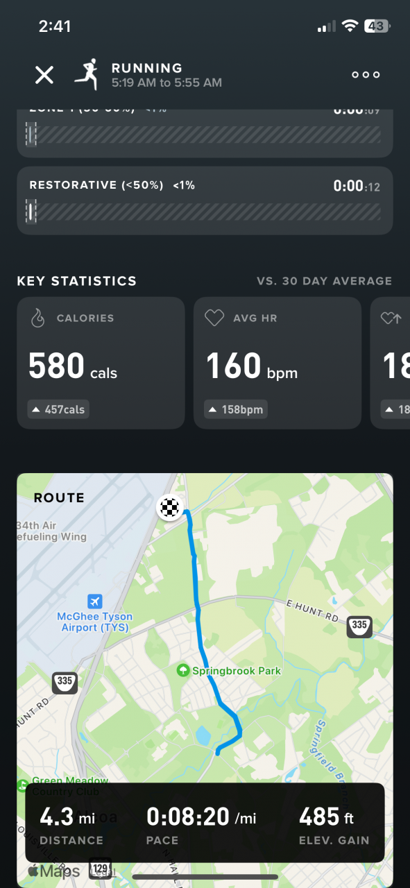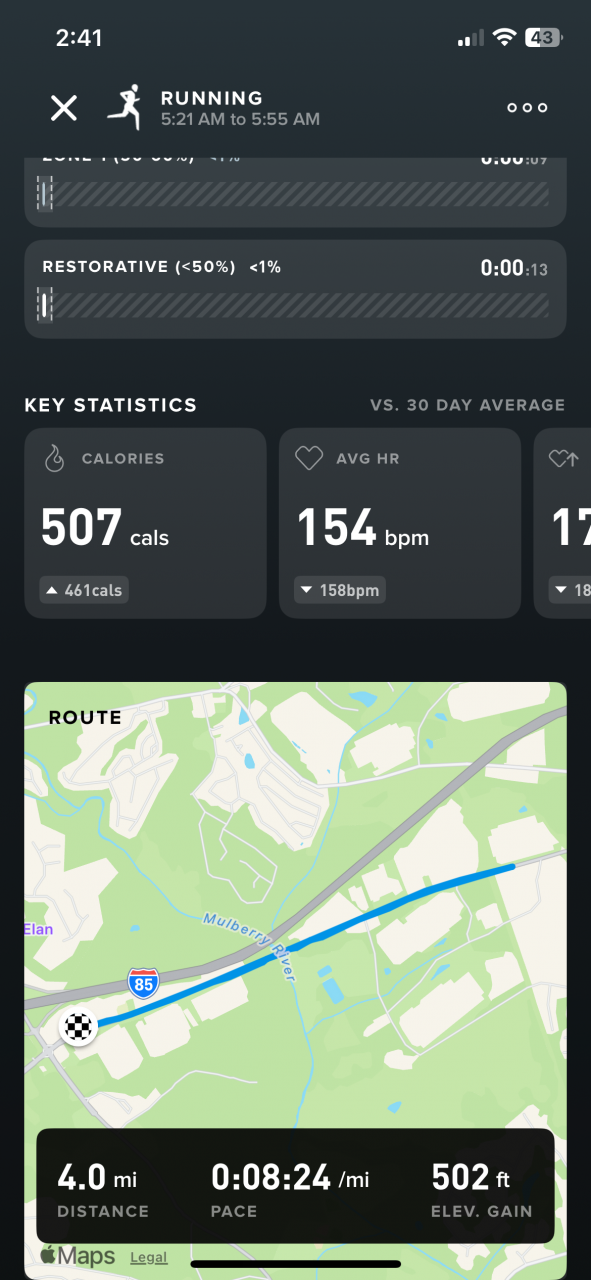 That’s the Whoop. I also use the Peloton app because it breaks it down a little more. Gives me my actual speed and mile splits.