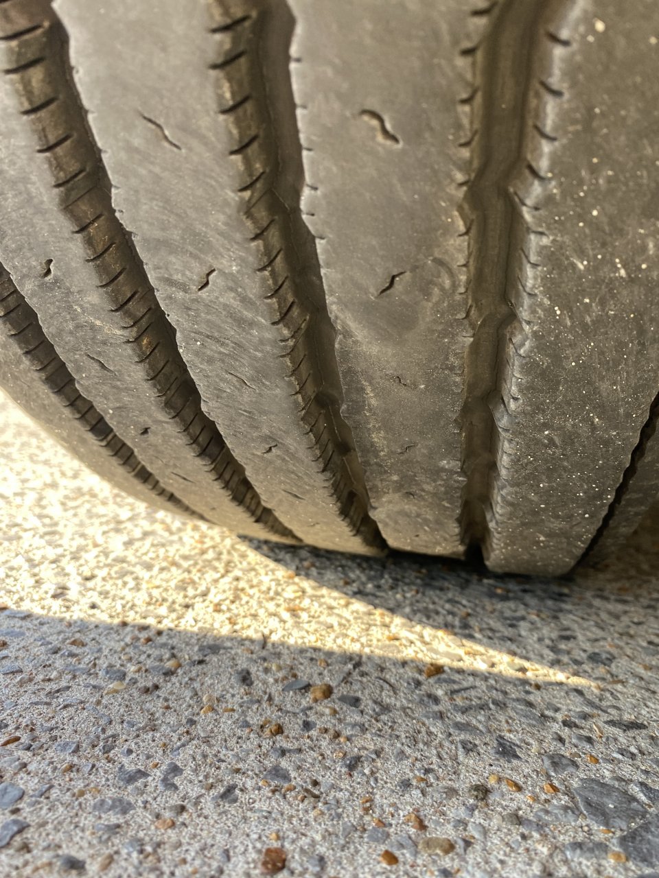 I agreed with you until I started running 295/60 on the steer. With Michelins, the shoulder goes away too fast. Don't like the Continentals because they look like an aircraft tire (just smooth with 3 deep grooves) halfway thru their life, but at least I can get over 100k out of them. The Michelins seem to be getting better, albeit slowly, but they just don't hold up to our side loads in carhaul. Only good thing about how fast we go through tires is that we never see the river wear the OP is dealing with.