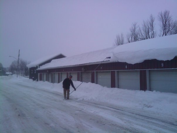I snapped this photo in Oswego, N.Y. my first winter out OTR. I don't miss driving in that crap one bit whatsoever. Look at the depth of the snow the guy was scrapping off his storage unit roof.