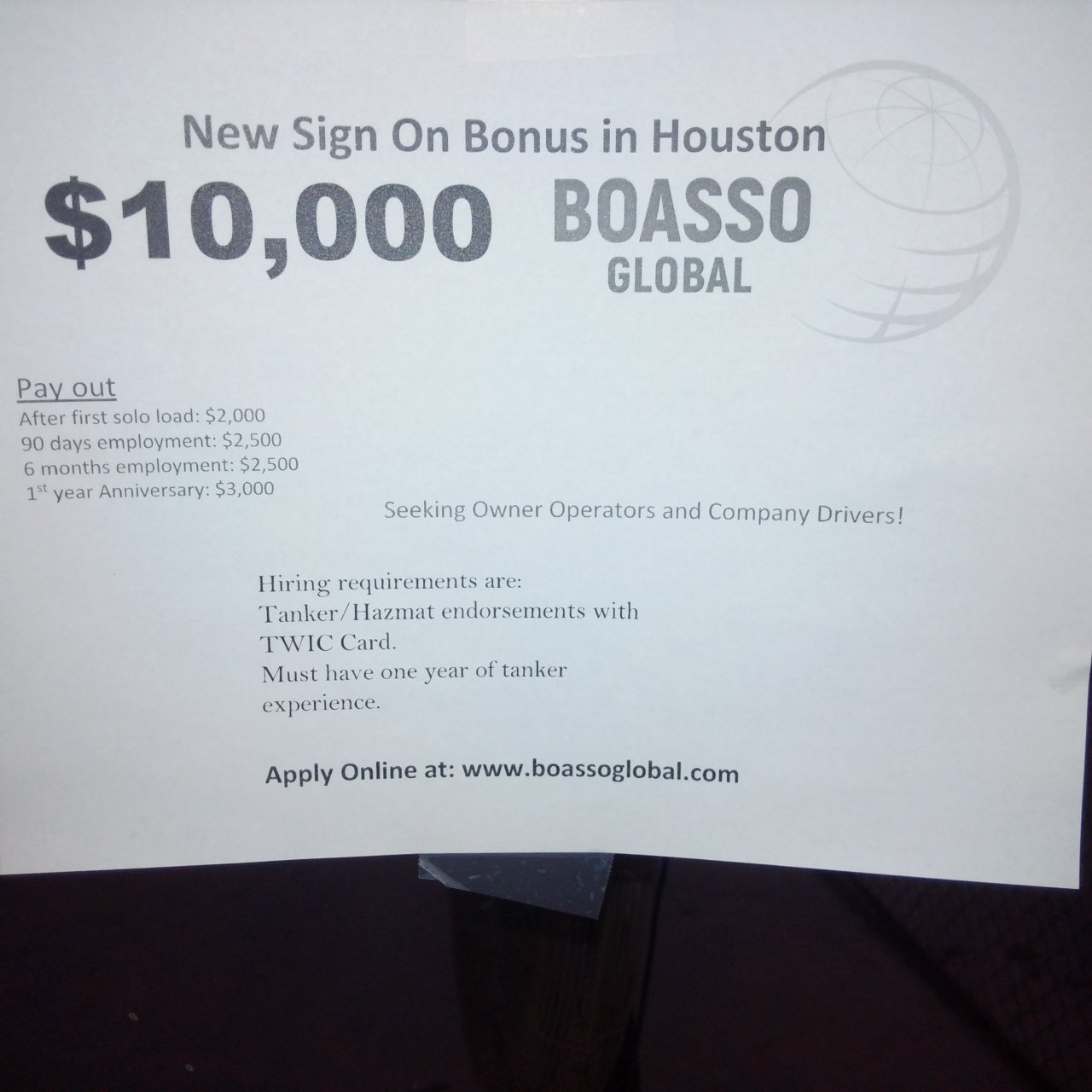 Yeah imma use boasso fuel card.. So Gulf States and Boasso the same company.. lol.. i been looking for trucks with Boasso on the side..