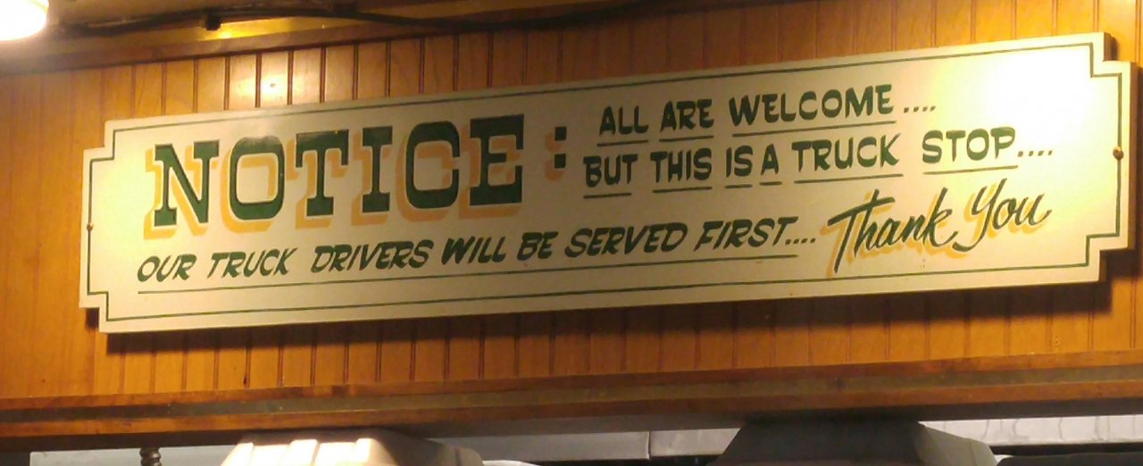 Almost all of the old 76 and then T/A's had a reserved for truckers only sign near thecounter area when walking into the restaurants. They even had one in the Petro in Reddick, Fl. until after their remodel when a trucker complained about a couple from the 4 wheeler parking lot came in and sat at the truckers area and caused a scene so the managers took the sign down and now we have no reserved seating area there.