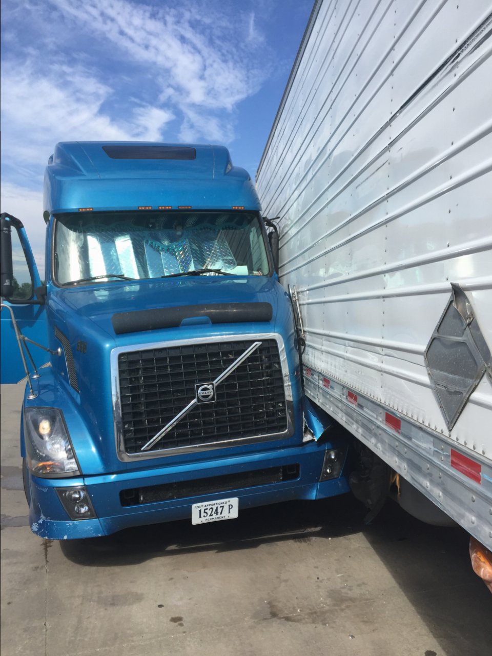 This guy pulled in behind me and was in my blind spot, I looked out that side of the mirror and did not see him.. As I pulled forward, I drove my trailer right into his truck.. Man I felt bad..