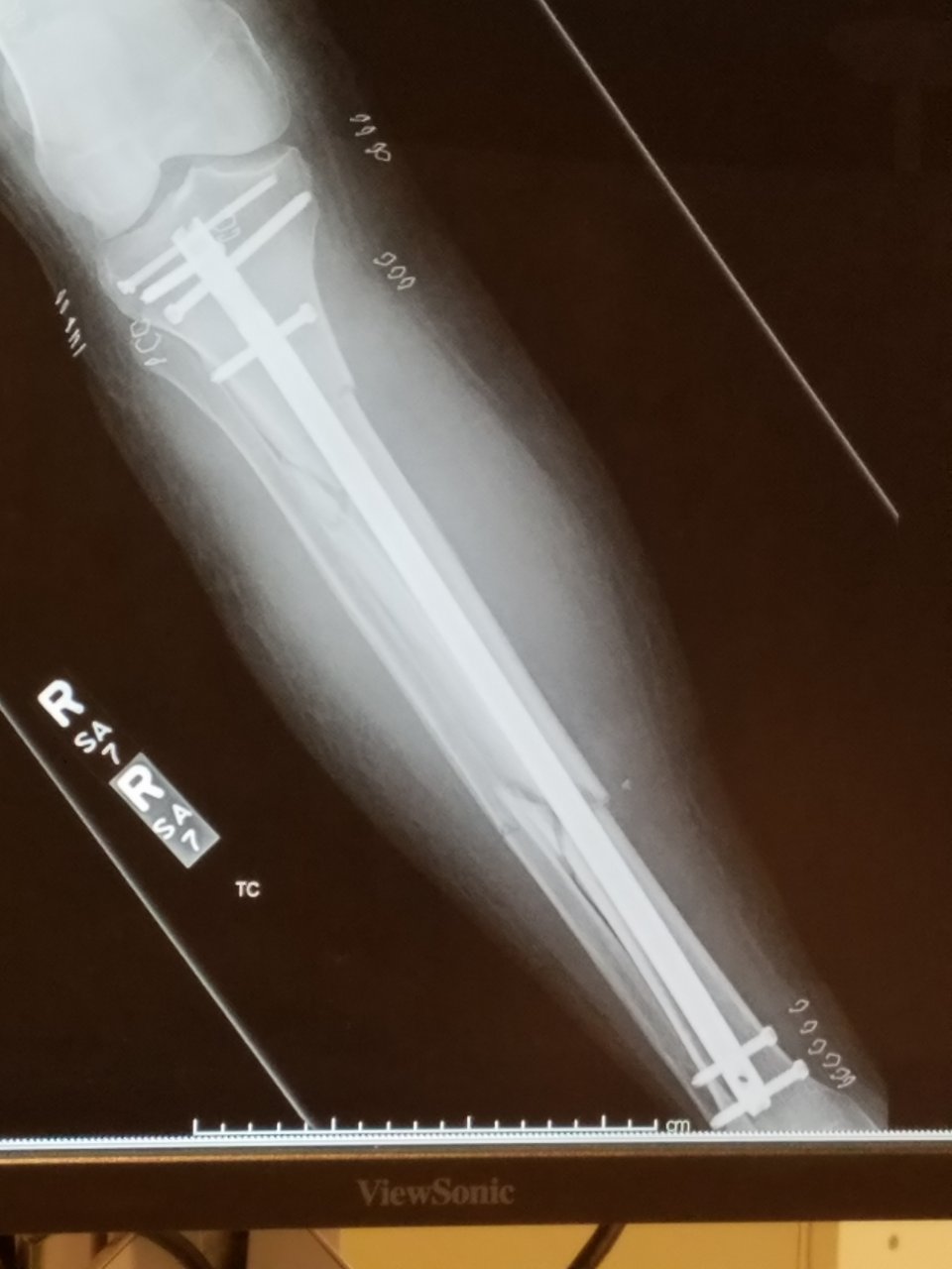 Well, 4 months of healing and with physical therapy and was released on Dec 28th to return to work. The issue I have now is pain below the knee which the surgeon feels is bursitis, it isn't getting better or worse, just always there. Walking isn't bad, stairs are still a slow go, and I think may always be.