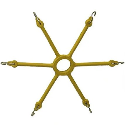 I used ones that were made from inner tubes. They stayed stretchy when cold and worked best for helping to keep tire chains tight.