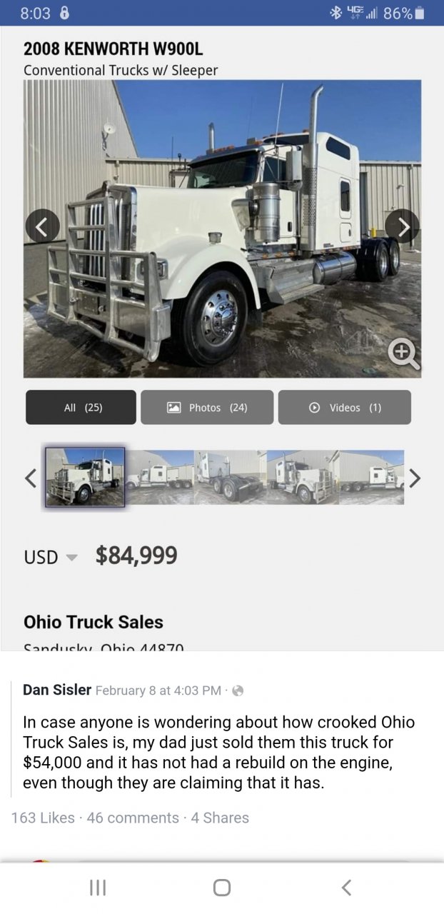 First my friend, I downloaded the post from the dirty old trucker, It was NOT mine. Secondly, you obviously never even read the screen shot I posted or my post. Because if you did, you would have seen the point I was making. That if true they blatantly lied about a rebuild. I looked up the truck on truck paper, and it said the truck had 100k on rebuild engine, and when traded in it was not rebuilt.