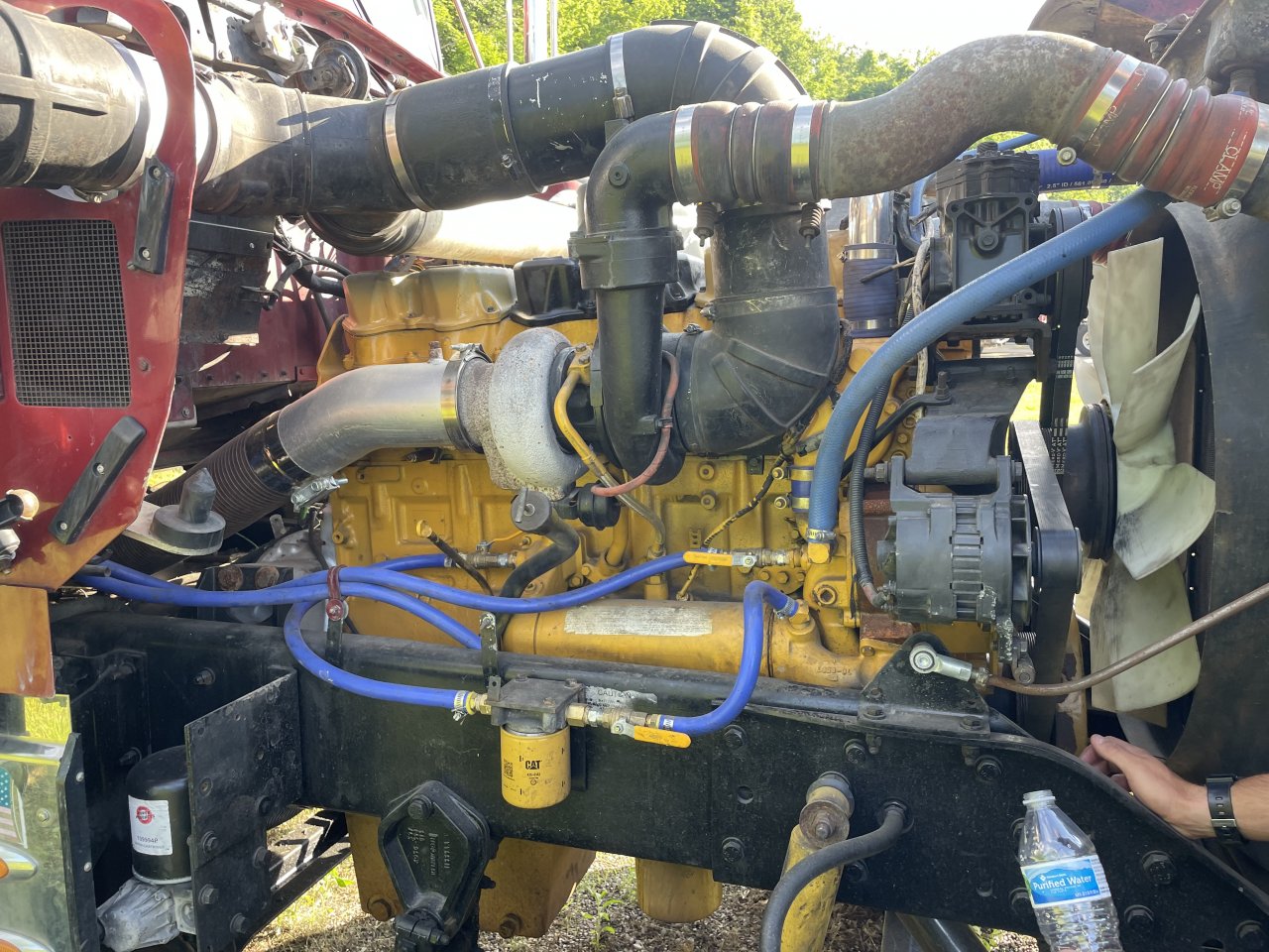 Owner said the truck originally had a Detroit. The Cat replacement engine is from a 1996 International dumptruck with 500,000 miles according to the owner….
