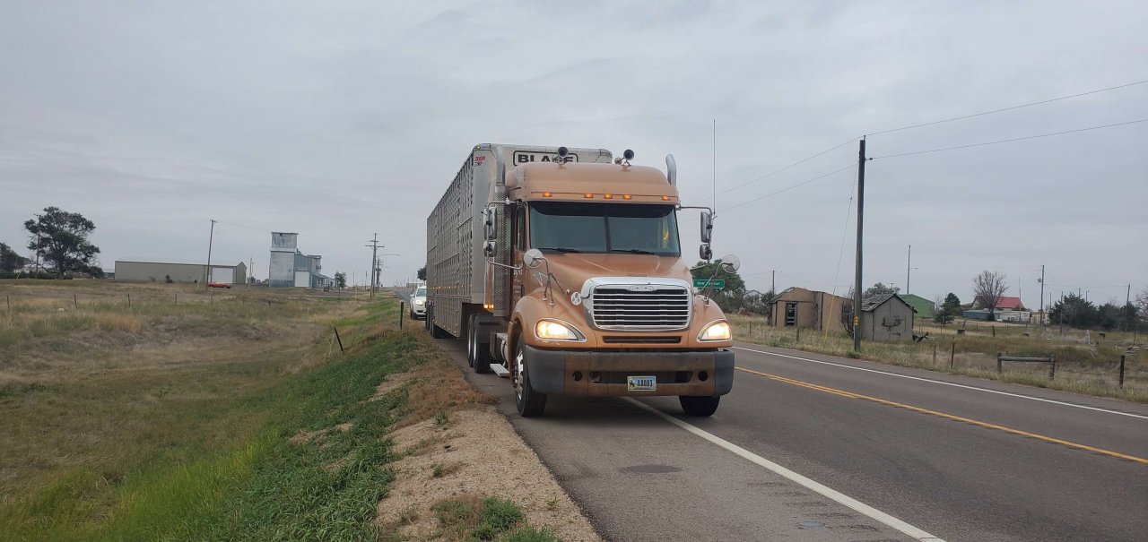 My first thought was "Oh ****, JB Hunt talked Sam Kane's into letting them haul cattle into the plant seeing as how they already haul the beef out of that plant" but fortunately this truck did not have the JB Hunt logo on the door.