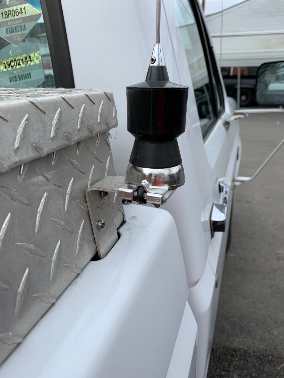 What the antenna is mounted to is also part of it it. Especially any flat/horizontal metal areas adjacent to the antenna. Like the flat lid of your toolbox, the lid conducting to the tool box, the toolbox connecting to the bed of the truck, and the bed connecting to the cab of the truck.