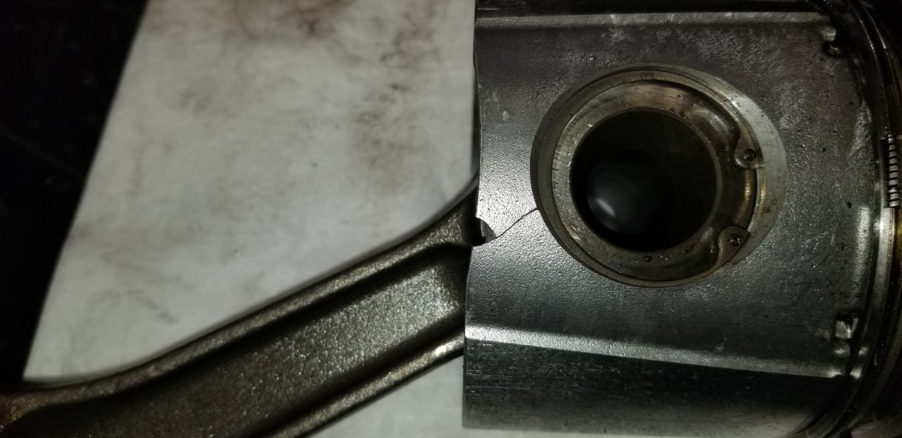 Note the heavy fretting on the connecting rod cap.......it was tight. But no doubt the hammering of the rod broke the piston.