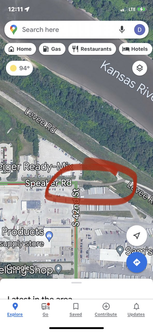 To the west of AWG right before Speaker hooks south and turns into 55th street there’s a large warehouse and there’s always trucks parked there. You can actually see some in the satellite view. No one is gonna run you off anywhere down there no one cares and KCK cops have bigger fish to fry than if a truck is parked at a warehouse it’s supposed to be in an industrial area. So you’ll be safe anywhere you land. Also as an important note you cannot get off on 635 south off of 70 it’s closed for construction. So if you’re comin in off 70 take 18th Street Expressway south to Kansas Ave. At the bottom of the ramp turn left (west) and follow that to 42nd street. Turn right (north) and it’ll veer left and turn into Speaker, and you enter AWG off Speaker Rd.