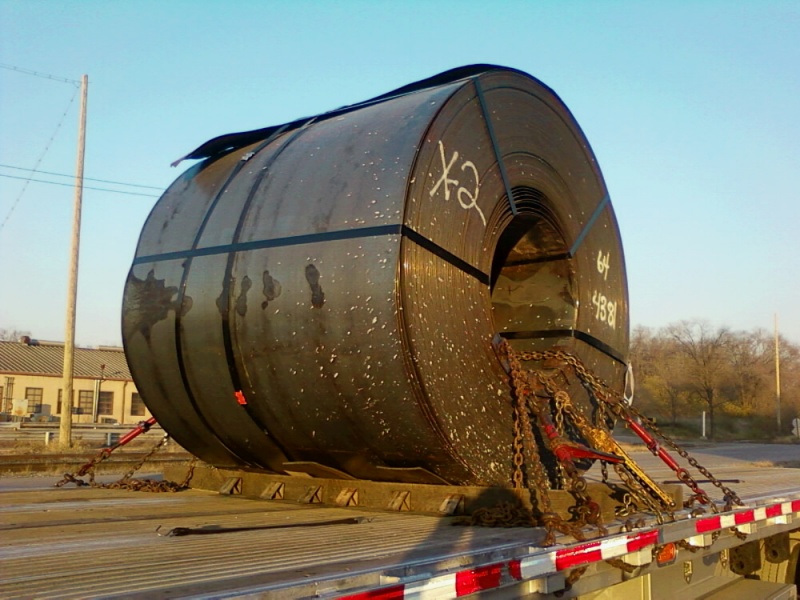 No seen them egged as it was called, my best friend just did one Monday that he even said was round intill he tighten the over the top chain down....when coils are stacked the are craddeled and weight is pretty equal and its not bouncing down the highway.