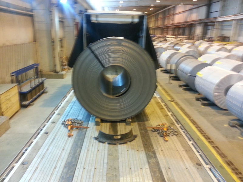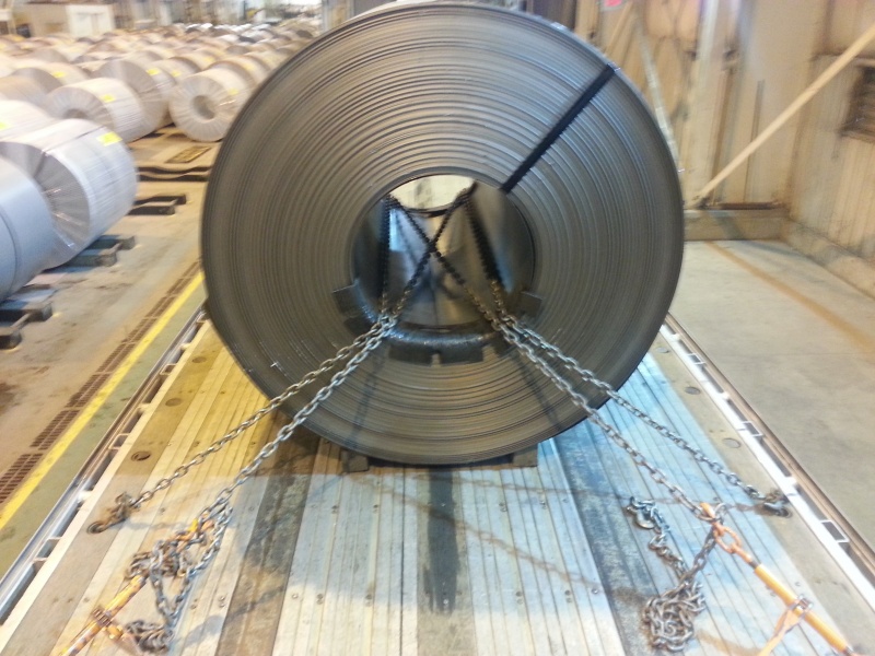 (iv) At least one tiedown attached transversely over the top of the coil; and(v) Either blocking, or friction mats to prevent longitudinal movement.