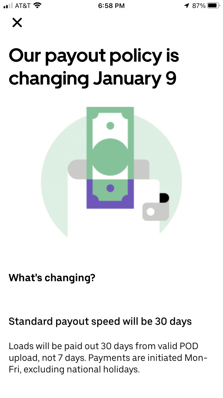Yeah, I used Uber once to get out of a jam. Their loads are 45k lbs. and they want to pay $1.90. GTFOH.