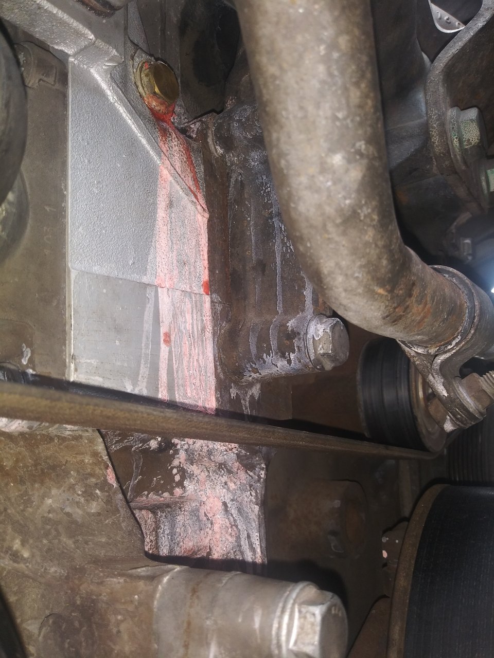 Yes, the brass plug that is leaking is the same location that Gridaxe posted and circled in red. Make sure to check under the cooler that the sensor is not there like in the short video where the person is changing the sensor. So, if you were to put a sensor in place of the leaking brass plug there is enough wire for the connector to plug into the sensor? As I said before there is usually just enough wire to reach where a connector plugs into the correct sensor.