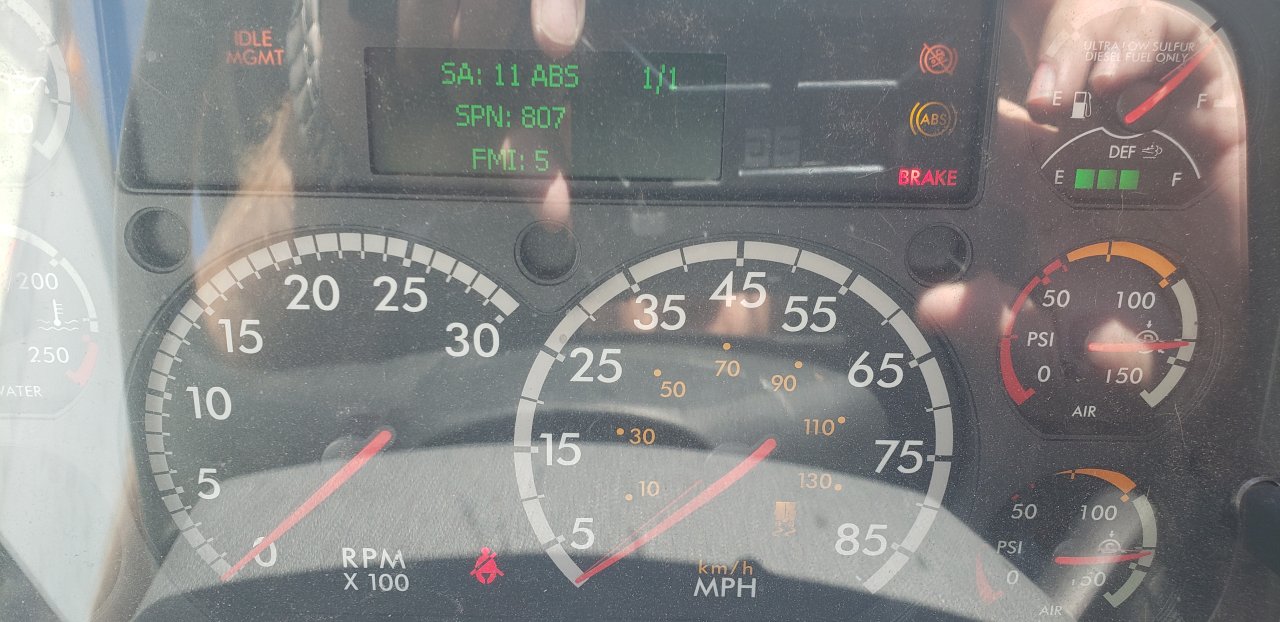 I have an '18 Cascadia that keeps blowing the tractor ABS, hill start assist and what I believe is the trailer traction control? (The light near the 85 mph in the speedometer). I've taken it to a shop at one of our terminals to have them run the diagnostics. They said some mumbo jumbo and said dont worry about it since the warning lights go out when I recycle the engine. But all 3 comes on shortly after I roll. I was able to get the fault code.If this pic doesnt show up, the error says: