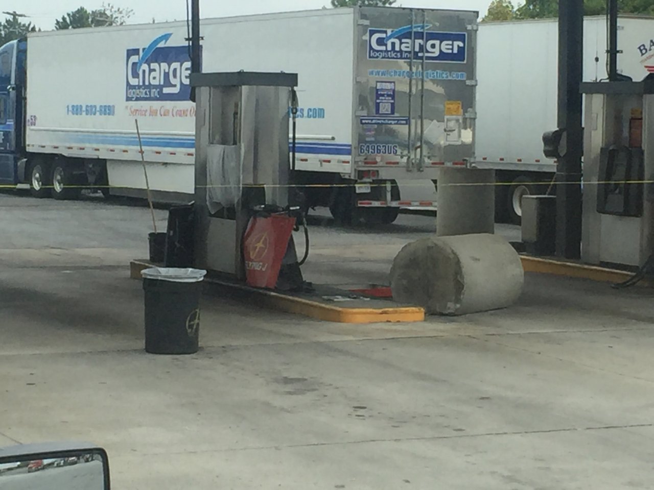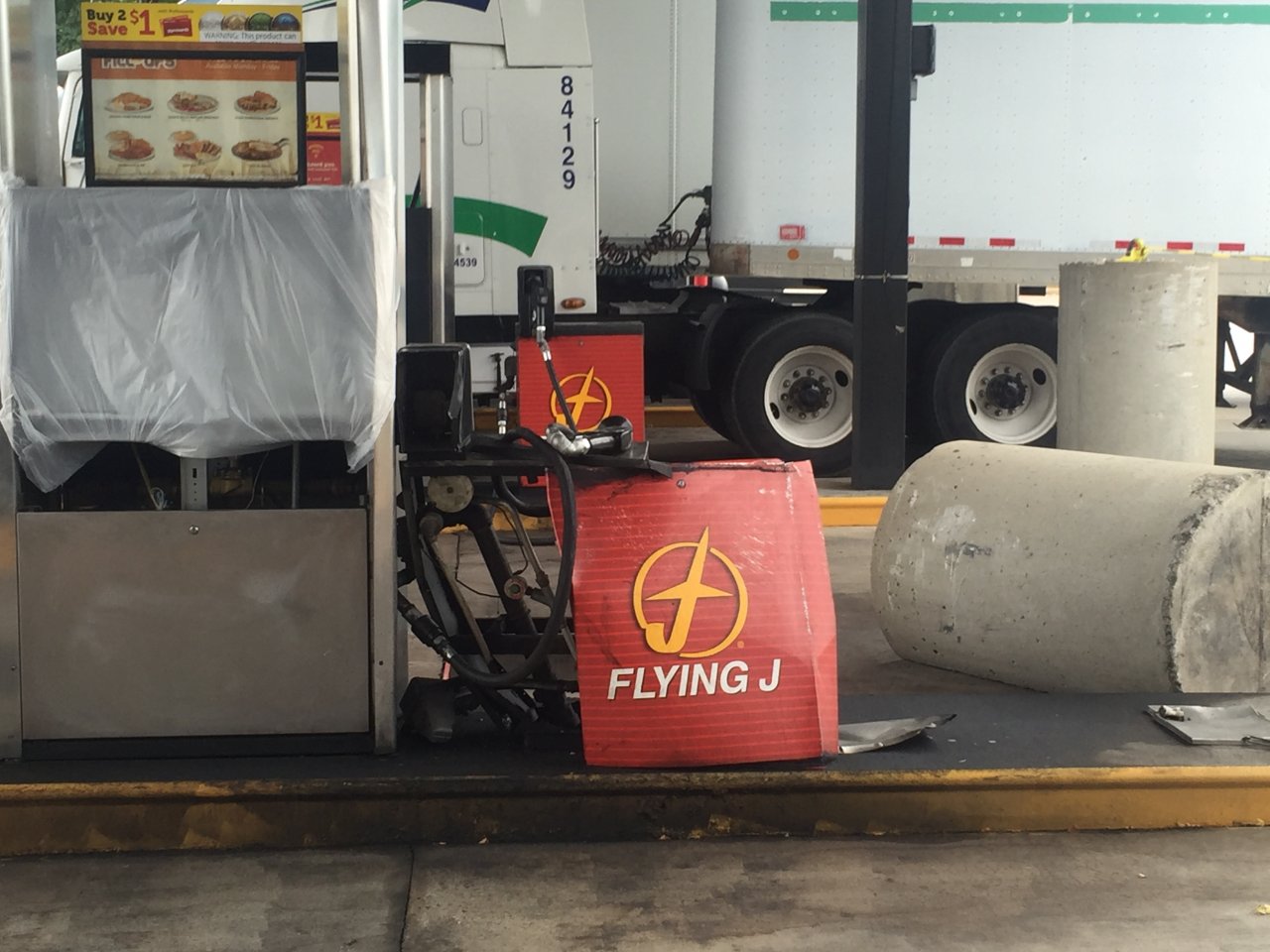 How in the..? There's big ol bollard laying on its side like that at the Effingham flying J.x1Heavy Thanks this.
