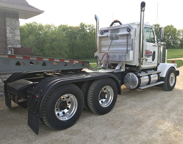 Three railers on one axle, interaxle locked: there is debate on this but I've found it's best to run the three railers on the front axle because it chews up the snow a bit for the back tires to grab slightly more. In this scenario, one of the chained wheel ends and one of the unchained wheel ends must break traction. This setup for most road going tractors with some weight over the drives will cover you on 90% of interstate passes.