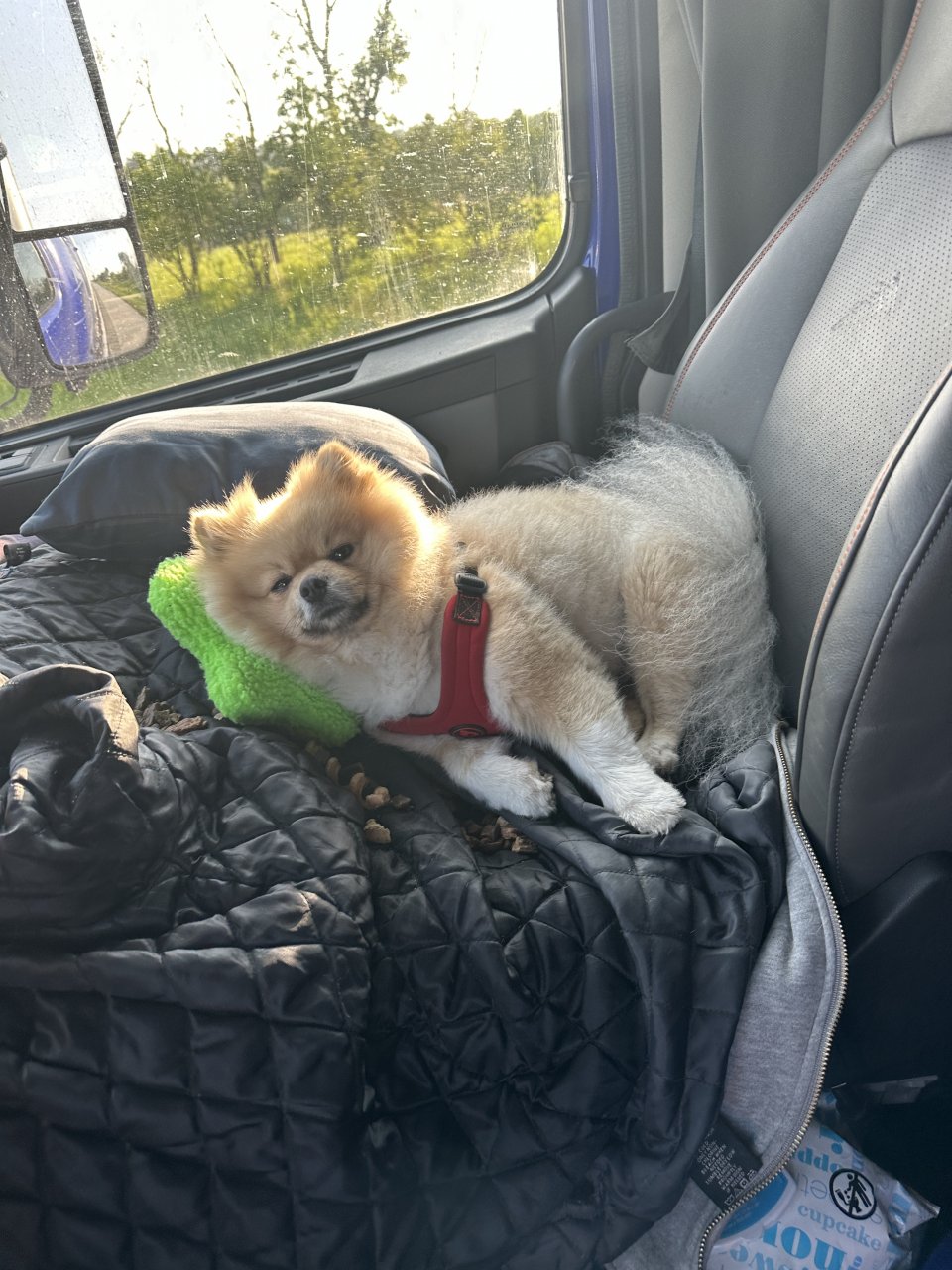 IMG_1162.jpeg IMG_1162.jpeg Well this little round trip was from Mo to wi and back to Mo. on the way up axle was up at 10k and got 9.1 mpg’s. On the way back was 25k with axle down and got 9.2 mpg’s. Total was 9.1 mpg’s for both trips. I was a little down because I did idle the truck more than usual. I have my little pup with me and wanted to make sure he is comfortable.