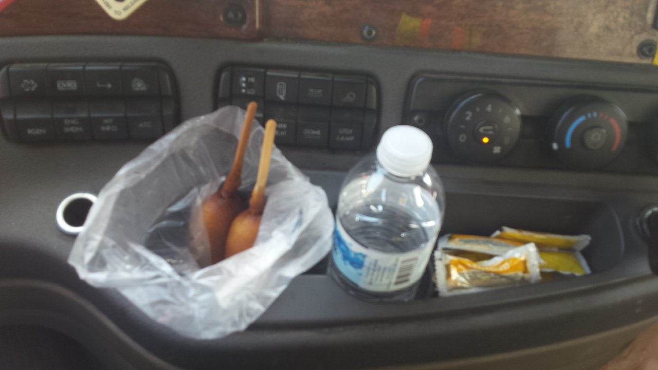 You should thank the other driver for not smoking, I mean fueling reefer. Otherwise you may have missed out on a great corn dog.