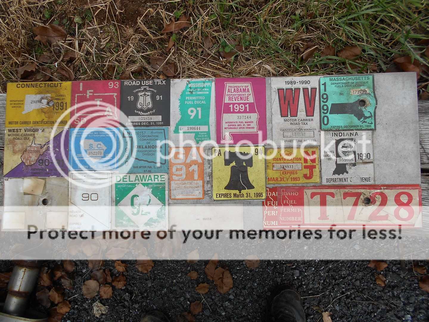 Before New Yuck issued HUT stickers, they issued a TMT (Truck Mileage Tax) plate that you attached to your plate holder. I have a couple out in the shop somewhere, and I'll try and get a photo of them. -