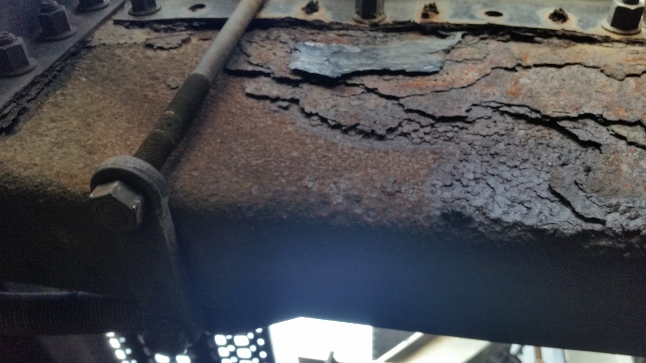 You could clean it up with a sandblaster or wire brush cup on an angle grinder and see how it looks. If it still has lots of uncorroded base metal you'll probably be ok. A frame rail insert could also be built and installed behind the rusted section. I got a quote from a steel shop to make me insert rails out of 1/4" thick QT100 and it worked out to cost about $50 per foot. Just gotta make sure you cut the ends at 45 degrees and have them cover an additional foot or 2 onto a good portion of the frame. Also bolt them in, don't weld if you go that route.BCO532335 and Straight Stacks Thank this. -