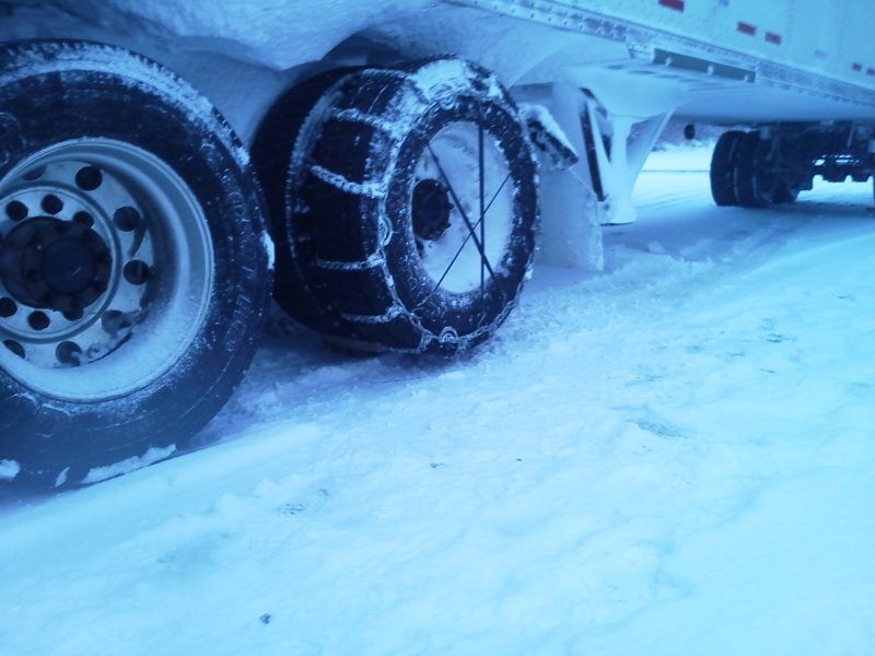#### down at a petrol off I 5...got a load going back to so cal ,but it was going over donner..learned hoe to put on those chains,both drives and one trailer axel...that was cold wet and dirty,took about four hours to chain,unchain,and drive over at 15-30 miles and hour,ran out of time so waiting for a repower
