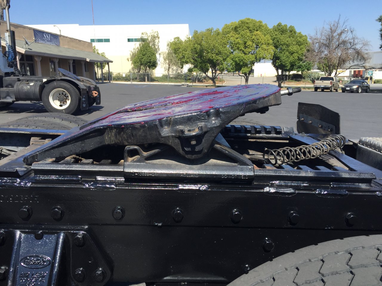 I hate that type of 5th wheel slide. What happens is stupid drivers (we don't even get to slip seat an assigned truck, it's what's available) drop, or even hook up at an angle and then slide. The 5th wheel has so much play in those teeth it will twist and pin itself at an angle. Take a large sledge beating on it to get it to release the pins so it will slide again.
