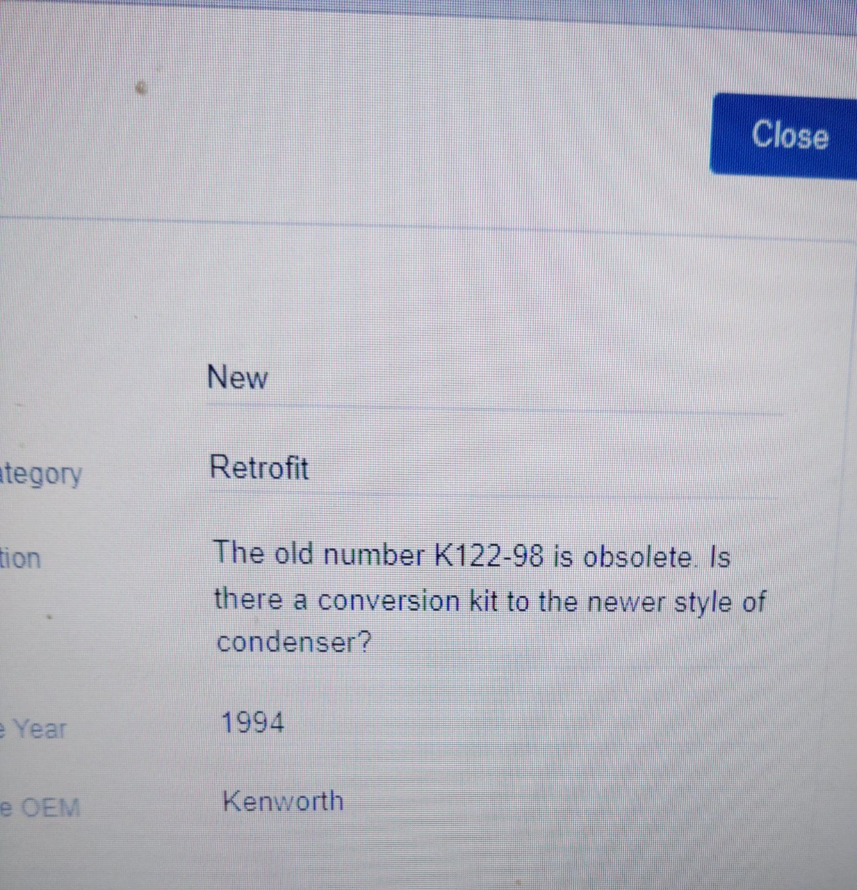 What do I put there? Do they make a R134 Grilldenser? KW tells me there's no superseding part number.