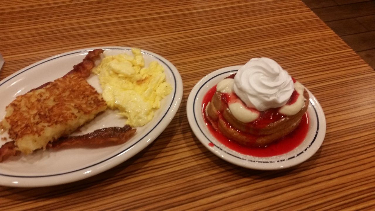 Stopped tonight at what looks to be a newer truck stop in Grantsville, Maryland Interstate 68 exit 22 right across from Pilot. It's a Sunaco truck stop With a little ceasers pizza and IHOP. The only negative is no showers which really stinks IMO cause then I gotta go over to Pilot. Anyhow for dinner I decided to get Breakfast after seeing these Cheesecake Stuffed Pancakes on the menu. You gotta try them. They were fantastic.:p So good I'll be having them again in the morning for breakfast. Service was great as well, the manager went table to table checking on everyone. Highly recommended. :wave: 20171117_163547.jpg