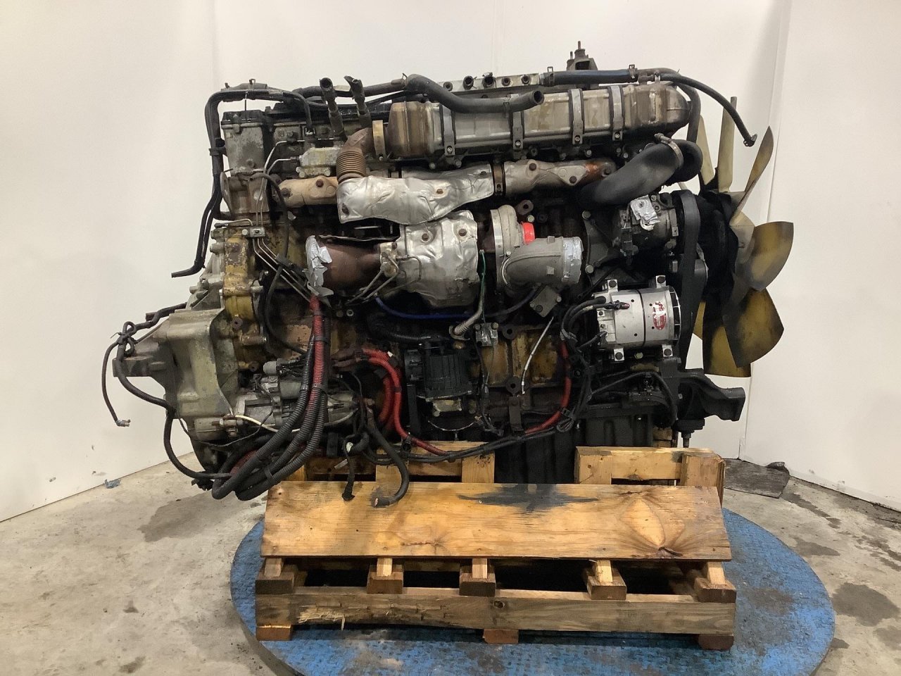 Usually when shops move them, they lay the engine on its side and then they'll strap it to the pallet.