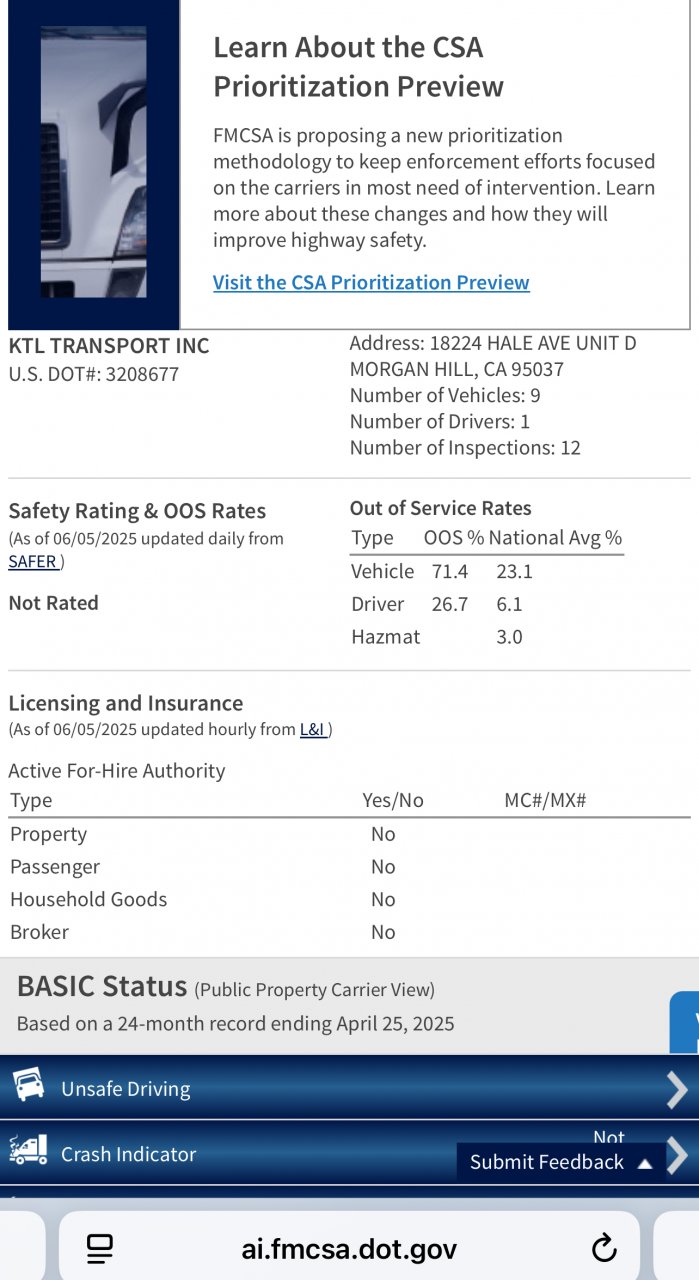 they’re registered with the federal DOT… On top of that their numbers are so horrendous. I can’t believe they’re still operating.. vehicle maintenance is absolutely atrocious the violations that they have OMG