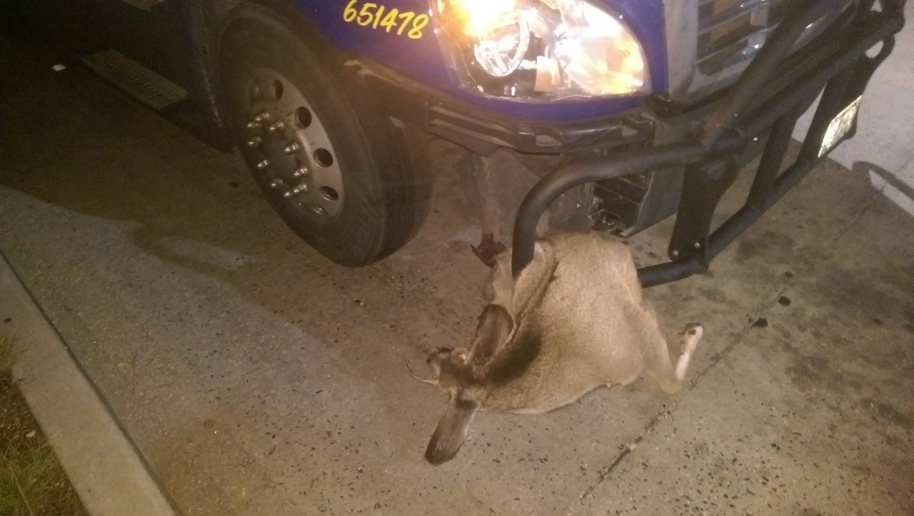 True story. Westbound out of Edmonton last night I spotted 2 deer crossing the highway in front of me. Hit the brakes and came to a complete stop just short of the 2 deer. Layed on the horn and both deer run for the center median. 1 deer made it without incident. The other one slipped on a patch of ice and patched out like bambi. Still laughing about that one.