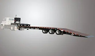 One thing that I hadn't considered was recovery of your trucks if ever you wanted to go and retrieve one that was down. The height on the type of trailer that I showed would become a problem with your tractors, but most ag and equipment rental places like Cat Rental Store use either a folding tail or sliding axle trailer as they can load everything from manlifts to small excavators, dozers and loaders, and farm tractors on them. The deck height is nearer to three feet on them though, so hauling one of your semi tractors would put you well over fourteen feet I imagine. Here is a photo of a sliding axle trailer.