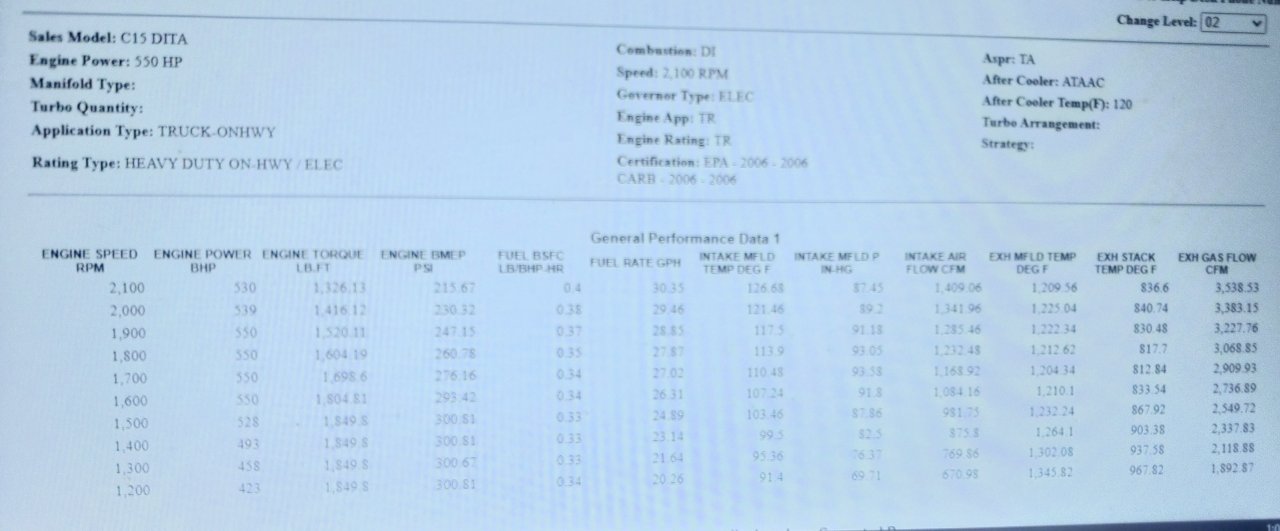 Only ACERT I had saved was the 625 HP one and it had the better flowing/less restrictive high pressure turbo on the exhaust side.![]()