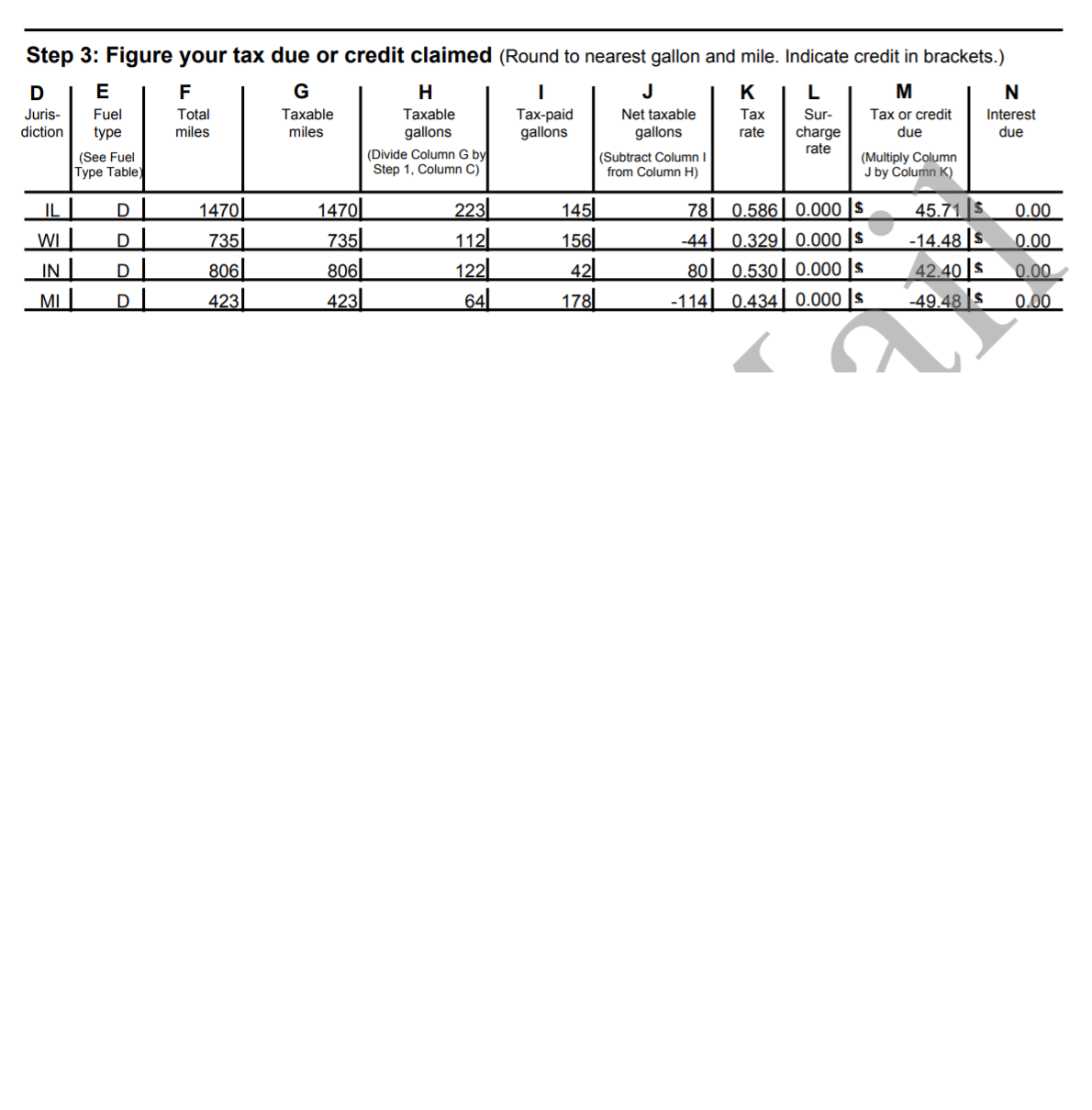 i think i figured it out thanks your guidance. I did not put how many gallons I bought in each state. that's column "I". so now once I looked at my receipts and put how many gallons I bought in each state, the form looks like that - attached files. it is more comparable to how much someone pays who makes 25k miles a quarter ...thnx