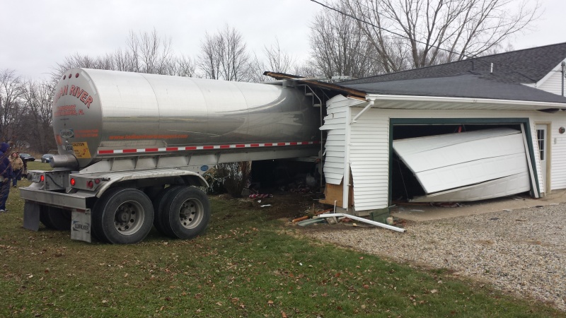 The preliminary crash investigation by Trooper Mike Meiser revealed that Drivers name removed age 56, Cabery, IL, was driving a 2014 Peterbilt semi-tractor, pulling an empty tanker trailer, eastbound on State Road 114. For an unknown reason, the semi traveled off the north side of State Road 114 and came to rest after hitting an unoccupied home located approximately 50 feet from the road. The homes garage, kitchen, and a bathroom where destroyed in the crash. The driver was trapped in the semi-tractor and had to be extricated by firefighters from the Henry Township and the Rochester Fire Departments.