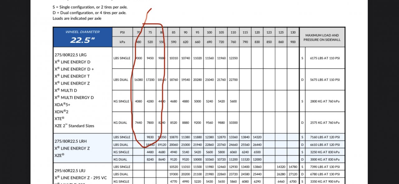 If you’re running the max load, sure. I bet most people aren’t running 45,400 on their tandems. The engineers say you should have 75psi for roughly 34k on two axles.