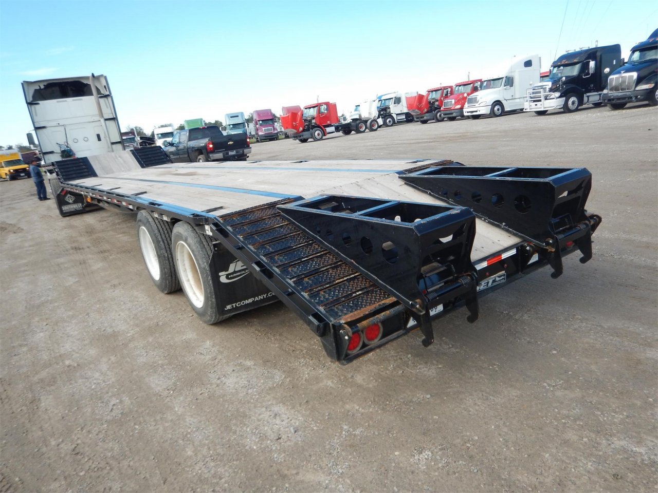 I found this trailer for sale about 7 hours away.It is a Jet 35 ton 48'. It has the tandems but they are pretty far back. The slope leading to the upper deck would be nice for loading my stuff up there. It is about 5k more than the other one I posted though. Thoughts on it?